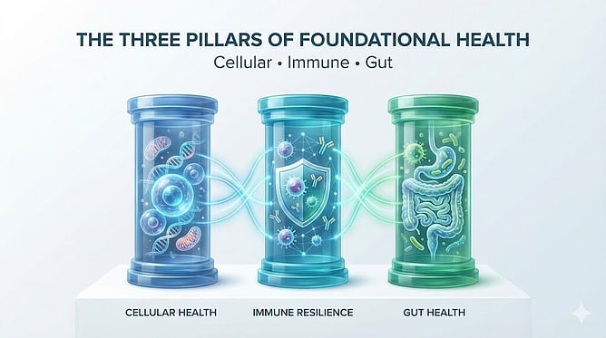 Modern longevity research has identified three interconnected areas that are fundamental to maintaining immune resilience: