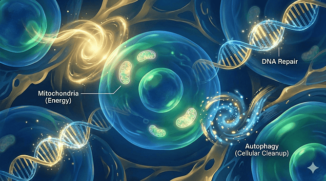 One of the most fascinating aspects of human biology is that you're constantly being renewed. Right now, as you read this, cells throughout your body are repairing themselves, clearing out damaged components, and maintaining the structures that keep you functioning optimally.
